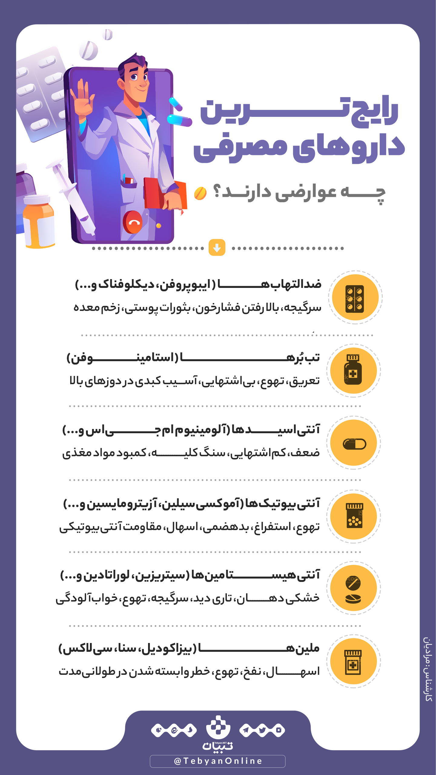اینفوگرافیک/عوارض رایج‌ترین داروهای مصرفی