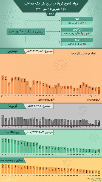 روند کرونا در ایران از ۳ شهریور تا ۳ مهر/اینفوگرافیک