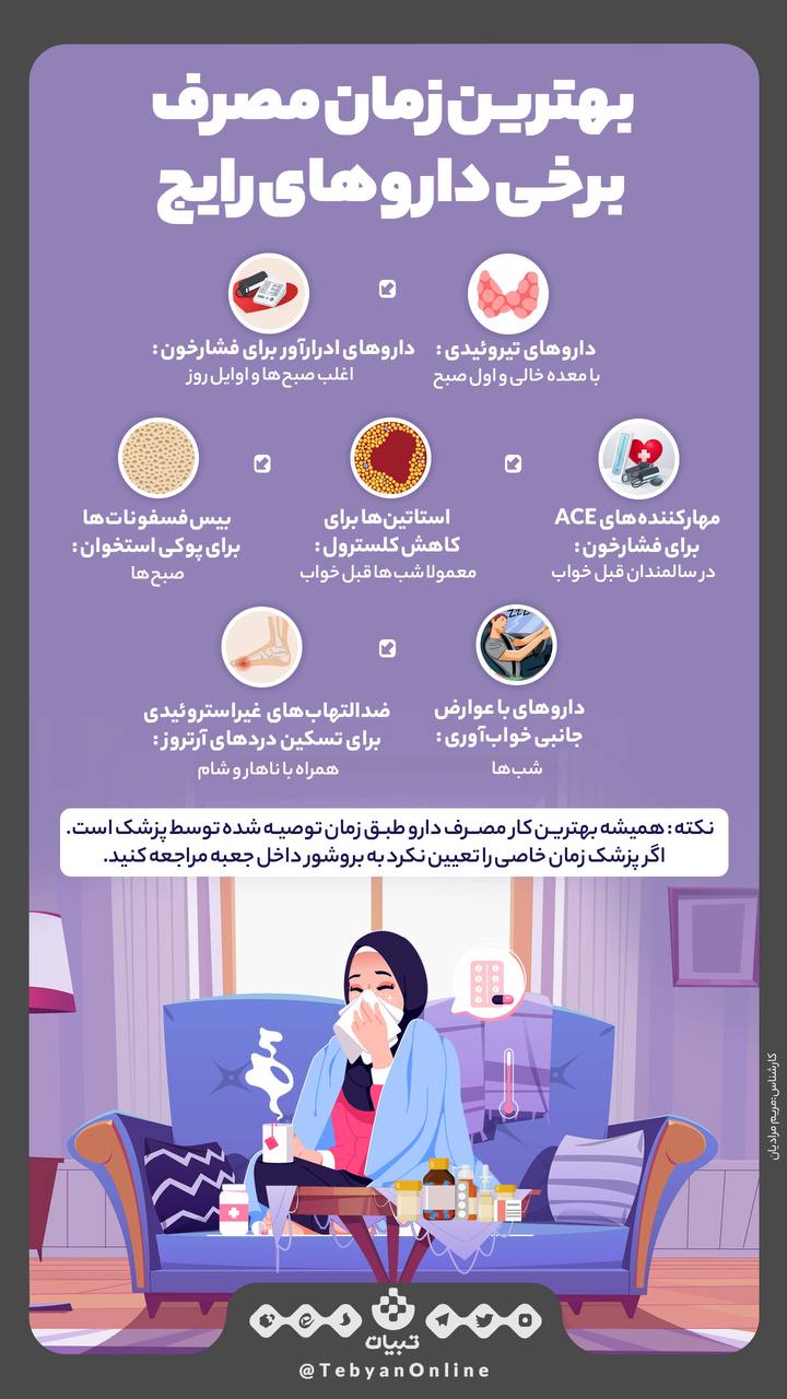 بهترین زمان مصرف برخی داروهای رایج+ اینفوگرافیک