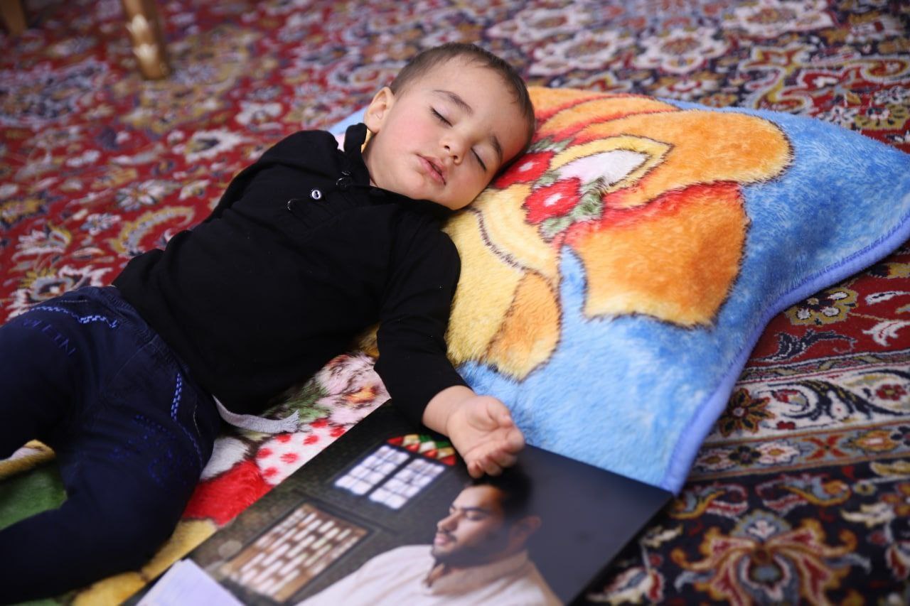 فرزند خردسال شهید امنیت در کنار قابی از پدر + عکس