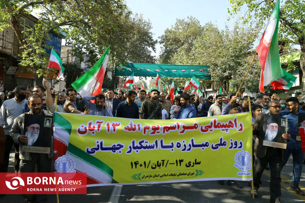 راهپیمایی یوم الله 13 آبان در شهرستان ساری با حضور آیت الله محمد باقر محمدی لائینی و جمعی دیگر از مسئولین و مردم ولایتمدار مرکز استان مازندران در شهرستان ساری برگزار شد.