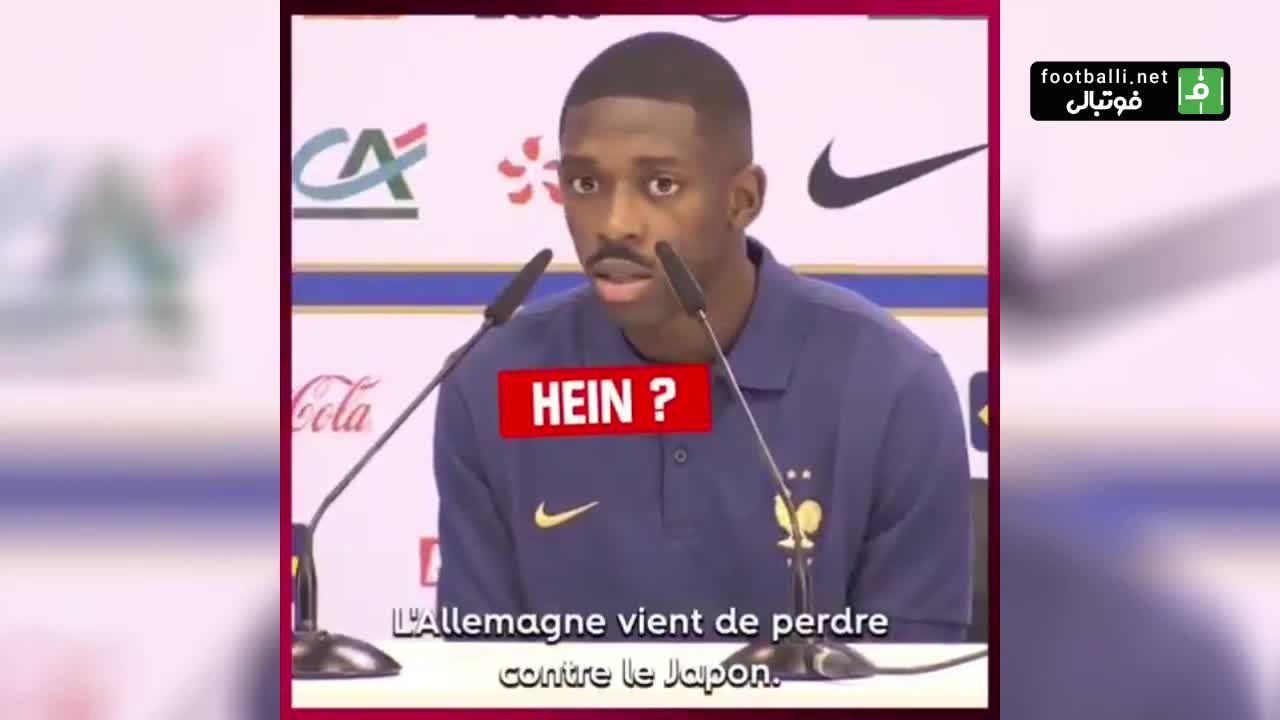 واکنش جالب توجه عثمان، دمبله مهاجم تیم ملی فرانسه در کنفرانس خبری پس از شنیدن خبر شکست آلمان مقابل ژاپن!