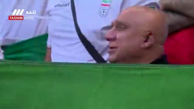 در هنگام پخش سرود ملی ایران، طرفدار ایران واکنش احساسی داشت و به ششدت گریه کرد.