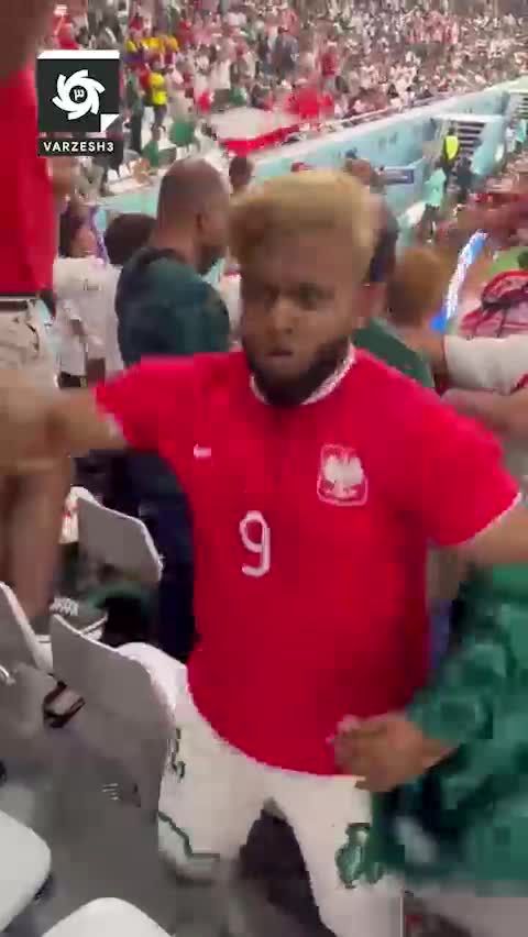 در حاشیه دیدار تیم های ملی عربستان و لهستان؛ حزب باد ترین هوادار جام جهانی ۲۰۲۲ قطر، تغییر از عربستان به لهستان در چند ثانیه!