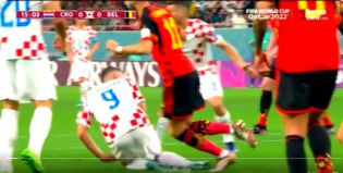 در همان دقایق ابتدایی بود که یان کاراسکو روی آندره کراماریچ، مهاجم تیم ملی کرواسی در محوطه جریمه مرتکب خطا شد و تیلور بیدرنگ یک پنالتی به سود تیم ملی کرواسی اعلام کرد. لوکا مودریچ، ستاره خط میانی تیم ملی کرواسی توپ را برداشت و روی نقطه پنالتی کاشت تا آماده باز کردن دروازه تیبو کورتوا، همتیمیاش در رختکن رئال مادرید شود.