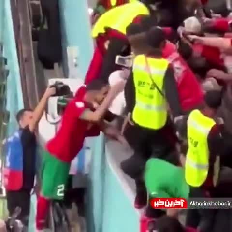 اشرف حکیمی که گل پیروزی بخش برابر اسپانیا را به ثمر رساند، ابتدا برای قدردانی سراغ مادرش رفت. تصویر او در آغوش مادرش در بازی قبل هم بسیار پربازدید شده بود.