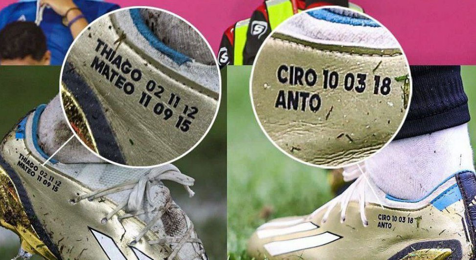 ٖتاریخ های هک شده تولد سه فرزند مسی روی کفش‌هایش + عکس