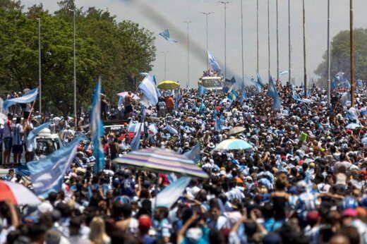 طبق گزارش رسانه ها، تخمین زده می شود که پنج میلیون نفر در خیابان های شهر جشن گرفتند. چون سرعت اتوبوس بسیار کند بود، بازیکنان با هلیکوپتر بر فراز بوئنوس آیرس پرواز کردند. انتقاداتی از رفتار نیروهای امنیتی و عدم تشکیلات درست در این مراسم نیز وجود داشت.