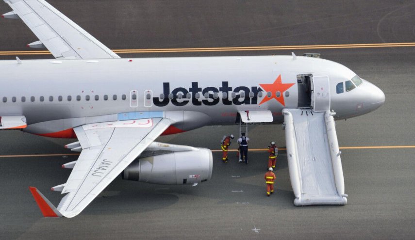 تصویری از هواپیمای ژاپنی پس فرود اضطراری در پی تهدید بمب‌گذاری