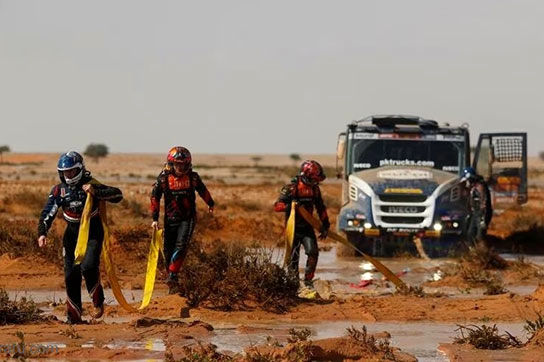 رالی داکار در عربستان سعودی به عنوان سختترین رالی بیابانی در جهان شناخته میشود و سیل امسال آن را سختتر کرده است.