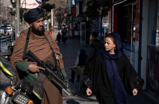زن افغانستانی در کنار مامور طالبان + عکس
