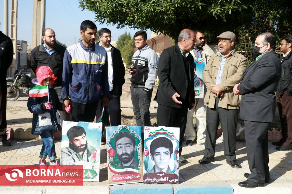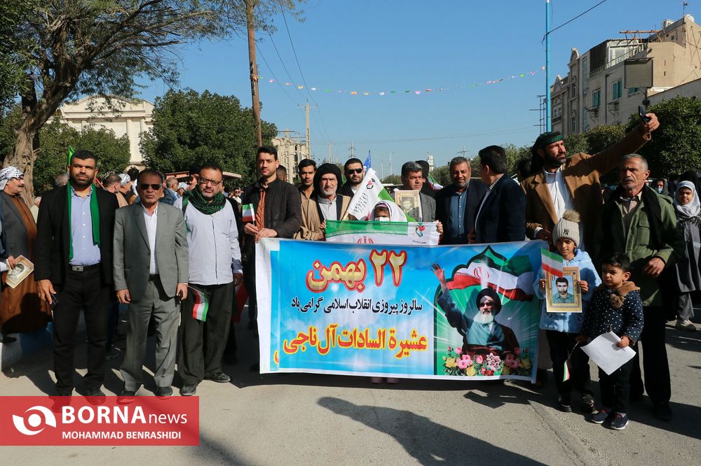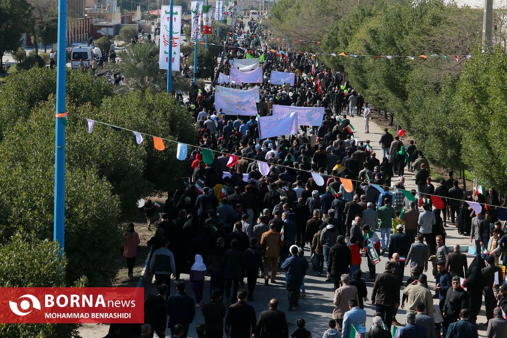 همزمان با سراسر کشور، مردم آبادان و شهرهای تابعه(اروندکنار و چوئبده) آن، امروز با حضور پرشور خود در راهپیمایی 22 بهمن، ضمن گرامیداشت چهل و چهارمین بهار انقلاب، بار دیگر حضور دشمن شکن خود را به رخ یاوه گویان و دشمنان ایران اسلامی کشاندند.