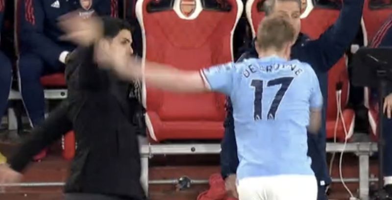 اما یکی از مهمترین درگیریهای بازی نه بین بازیکنان دو تیم، که بین میکل آرتتا، سرمربی آرسنال، و کوین دیبروینه، ستاره سیتی بود.
