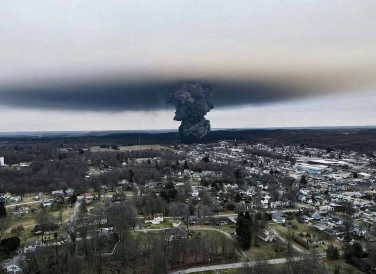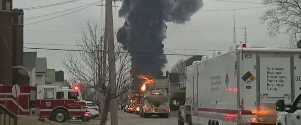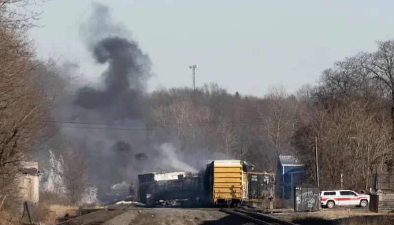 تصاویری عجیب از انفجار قطار حاوی مواد شیمیایی سرطان‌زا در اوهایوی آمریکا + عکس
