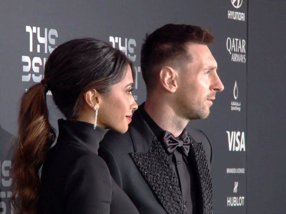 فرهیختگان ورزشی: تصویری از لئو مسی در کنار همسرش در محل برگزاری مراسم بهترینهای سال فیفا را ببینید.