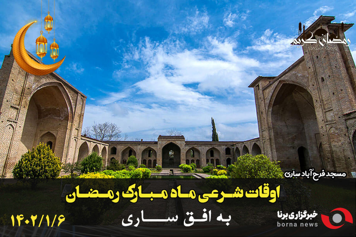اوقات شرعی ساری در 6 فروردین 1402 برابر با چهارم رمضان را اینجا بخوانید.