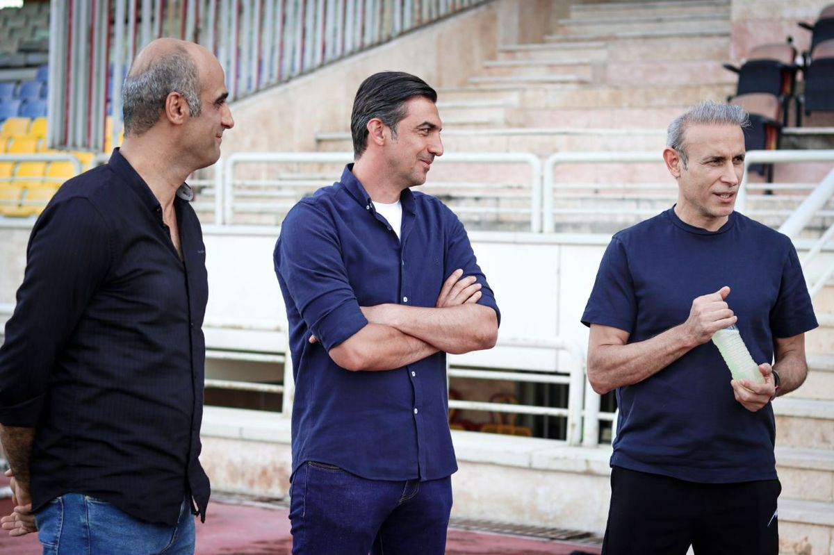 سرمربیان پرسپولیس و نساجی مازندران قبل از شروع این دیدار دوستانه به همراه افشین پیروانی و فرهاد کوچکزاده، مدیران دو تیم در کنار یکدیگر حضور پیدا کردند و در زمان تمرین بازیکنانشان، بگو و بخند داشتند.