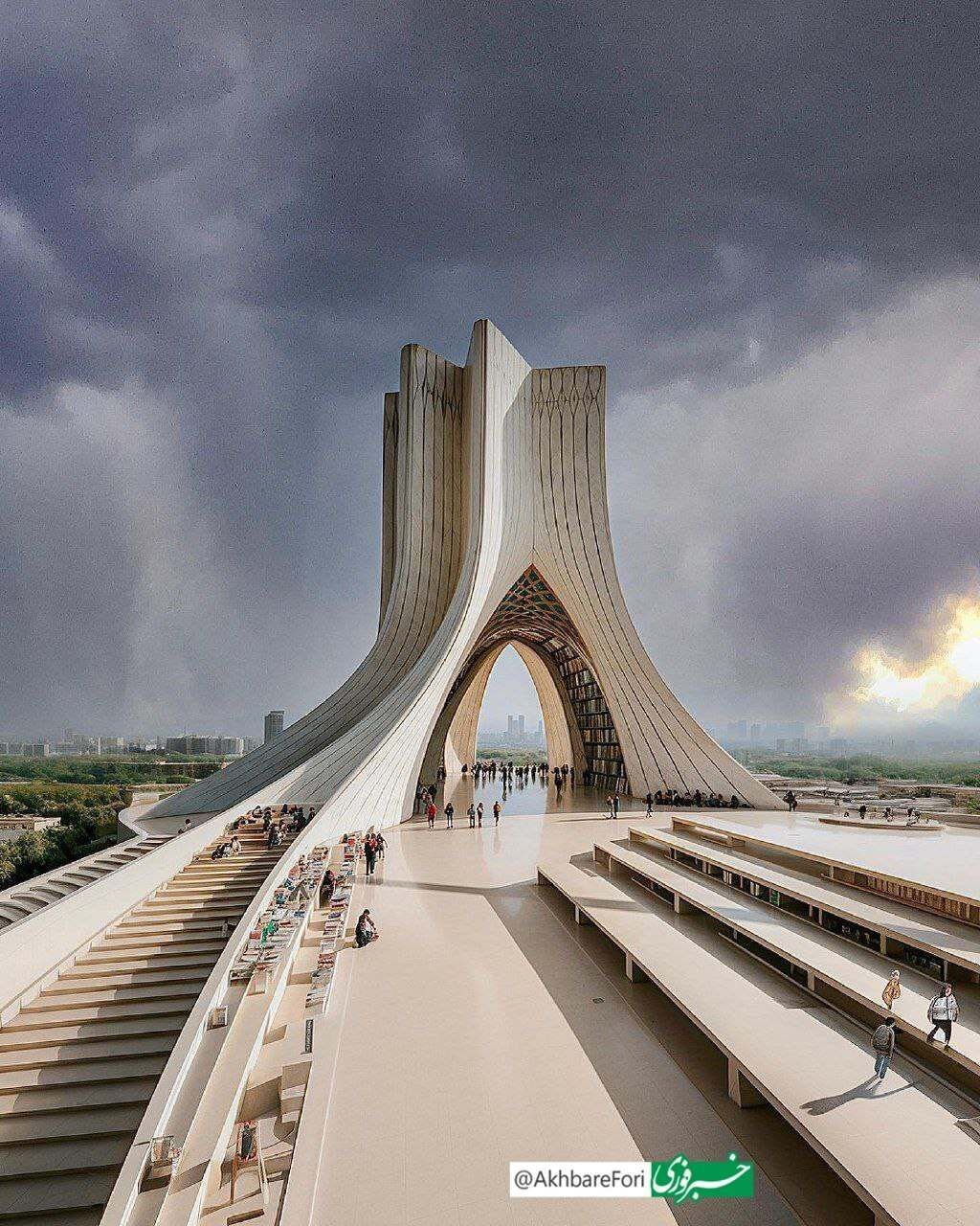 در جدیدترین درخواست از هوش مصنوعی توسط کاربران ایرانی، میدان آزادی به کتابخانه تبدیل شد. منبع: خبرفوری