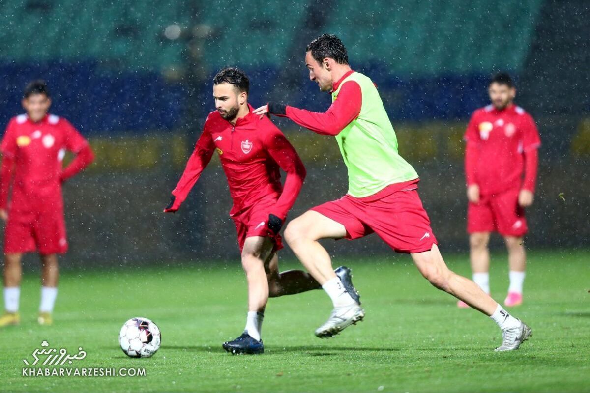 اگرچه بخشهای مختلف تمرین تاکتیکی سرخها تحت تاثیر این باران قرار گرفته بود اما بازیکنان همچنان با جدیت خاصی تمرین را دنبال میکردند.