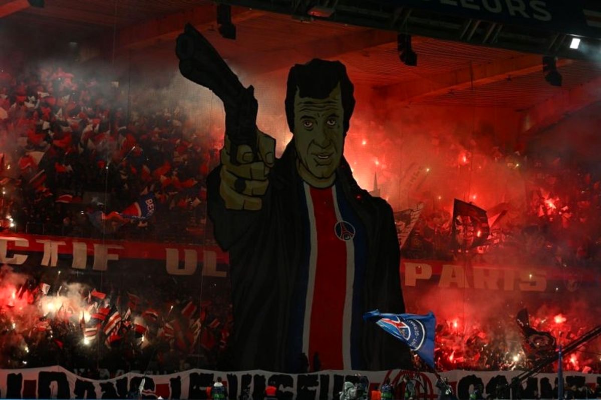 لقب تیم میلان "شیاطین" است و هواداران پاریسی یک ماکت شیطان قرمز سوراخ سوراخ شده را با خود به ورزشگاه پارک دو پرنس برده بودند و پشت یکی از دروازهها مستقر کرده بودند و در پشت دروازه دیگر هم یک بنر بزرگ با طرح یک کاراگاه که کاریکاتور ژان پل بلموندو بازیگر فیلمهای پلیسی و کاراگاهی فرانسوی را با تفنگ را رو به ماکت شیطان میلانی در سمت دیگر زمین بلند کردند و زیر آن نوشتند "صورتش را هدف بگیر! مثل بلموندو". تماشاگران هنگام پخش سرود چمپیونزلیگ در کنار آتشبازیهای زیاد این دو بنر را بالا گرفتند و در همان ابتدای بازی فضای رعب آلودی را برای تیم میهمان ایجاد کردند.