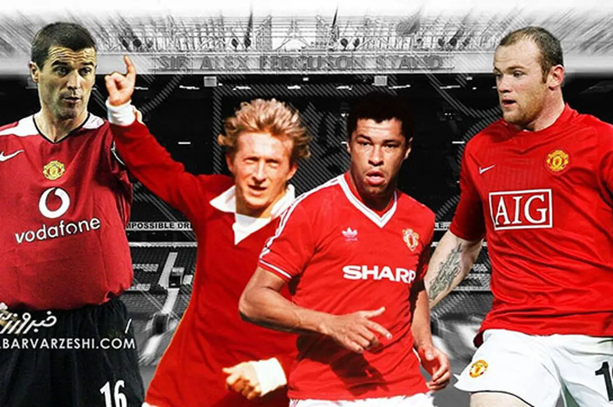 کاپیتانهای سابق روی کین و ریو فردیناند در جایگاه شش و هفت قرار گرفتند و کریستیانو رونالدو به خاطر انتقالش در سال ۲۰۰۳ در جایگاه هشتم ایستاد. رود فان نیستلروی مهاجم هلندی با ۱۵۰ گل در ۲۱۹ بازی جایگاه نهم را از آن خود کرد و دنیس اروین، مدافع کناری، ده نفر برتر را تکمیل کرد.