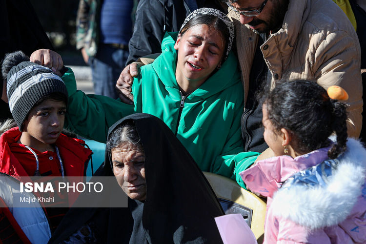 خانواده شهدای انفجار تروریستی کرمان صبح روز ۱۵ دی ۱۴۰۲ برای شرکت در مراسم تشییع شهدای این حادثه در حال ورود به مصلی کرمان هستند.