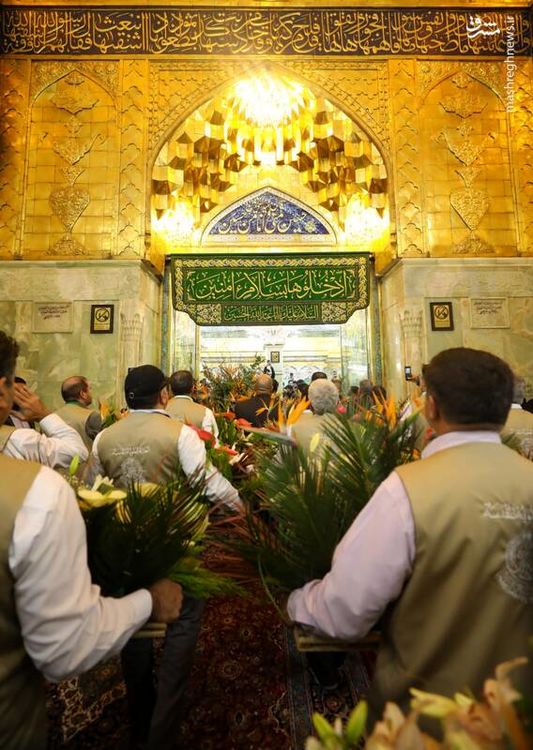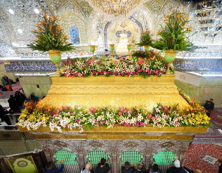 ضریح مطهر حرم امام حسین علیه السلام در آستانه میلاد امیرالمومنین حضرت علی علیه‌السلام گل‌آرایی شد.