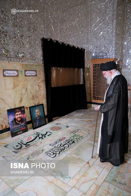حضور رهبر انقلاب بر مزار شهیدان دکتر حسین امیرعبداللهیان وزیر فقید امور خارجه، سردار سید مهدی موسوی فرمانده حفاظت رئیسجمهور شهید رئیسی، شهیدمدافع حرم سیدمهدی جلادتی از همراهان شهید زاهدی در حمله رژیم صهیونیستی به سفارت ایران در سوریه و وحید زمانینیا از شهدای محافظ شهید حاج قاسم سلیمانی در فرودگاه بغداد؛ حرم مطهر حضرت عبدالعظیم حسنی (علیهالسلام) در شهرری؛ مردادماه ۱۴۰۳