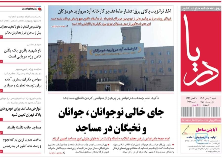 صفحه اول روزنامه‌های هرمزگان شنبه ۲۰ بهمن