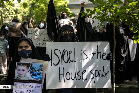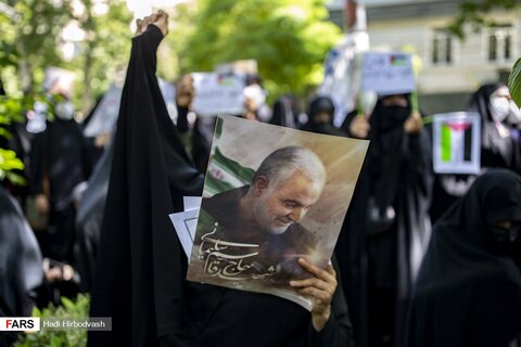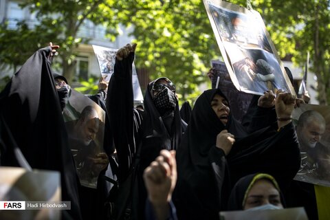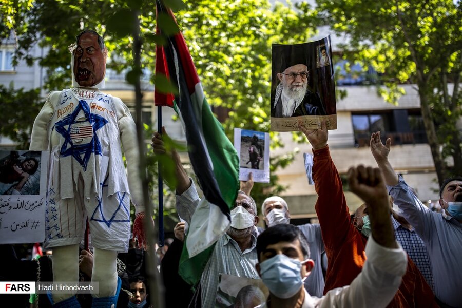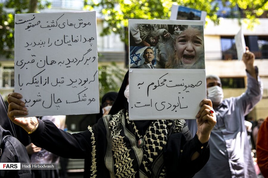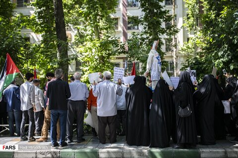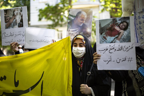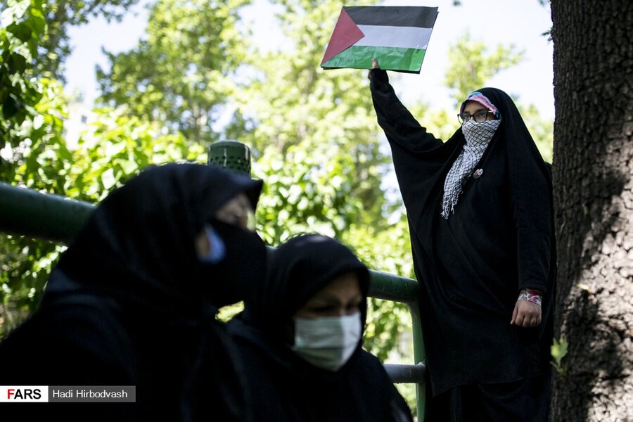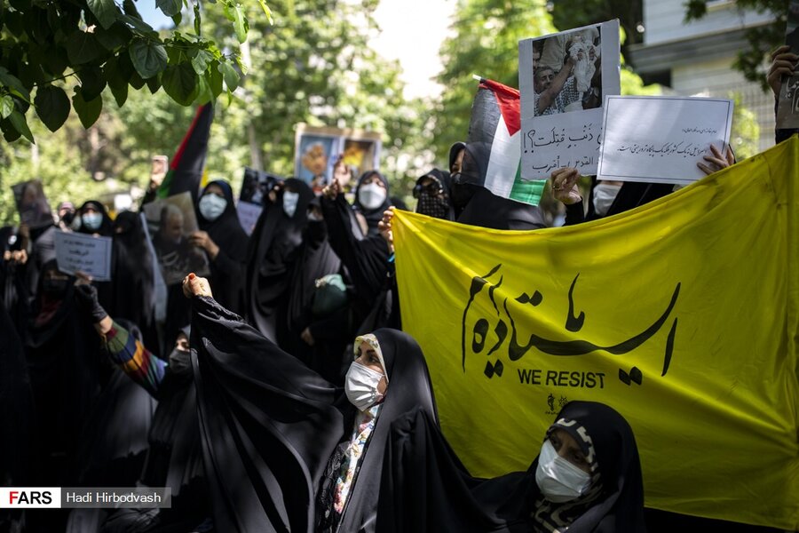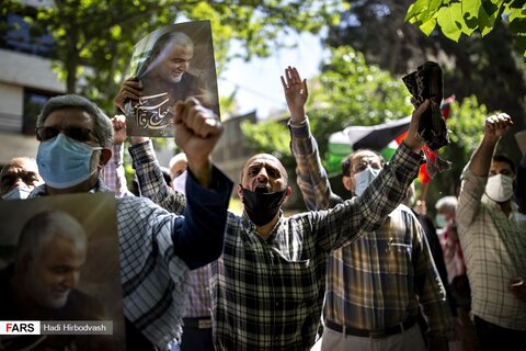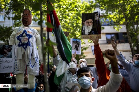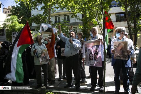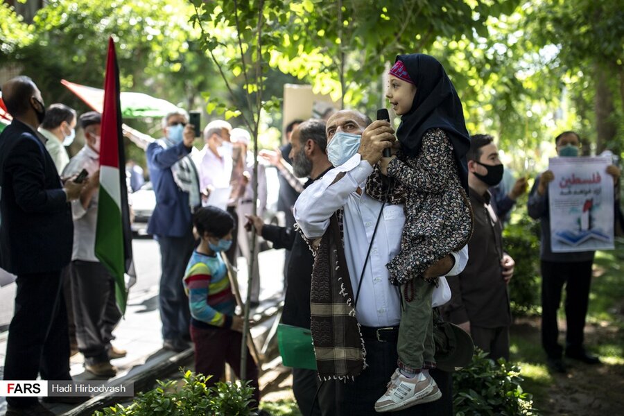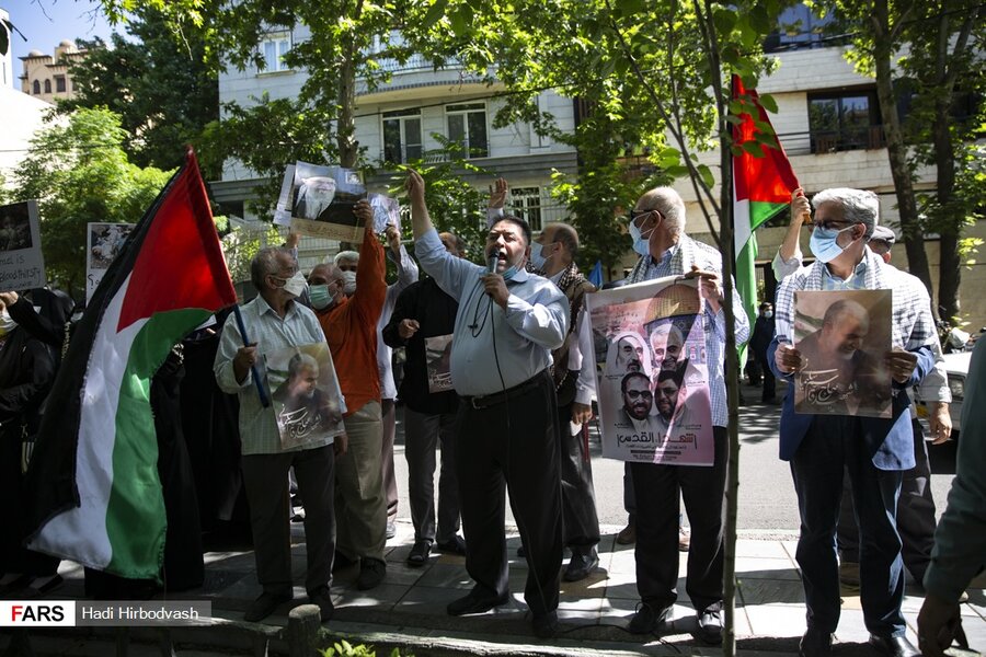 تجمع خود جوش مردم تهران در حمایت از فلسطین و محکوم کردن جنایات رژیم غاصب صهیونیستی صبح روز پنجشنبه ۳۰ اردیبهشت ماه ۱۴۰۰ در مقابل دفتر سازمان ملل در تهران برگزار شد.