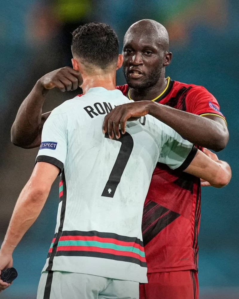 بعد از به صدا در آمدن سوت پایان بازی امشب، کریستیانو رونالدو ناراحت ترین بازیکن زمین بود. او از شدت ناراحتی بازوبند کاپیتانی خود را از دستش باز کرده و به زمین کوبید. در حالی که کاپیتان پرتغالی ها با ناراحتی در حال ترک زمین بود با لوکاکو مواجه شد و مهاجم تنومند بلژیکی ها با در آغوش گرفتن رونالدو، سعی کرد تا او را کمی آرام کند.