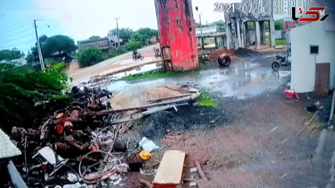دوربین مداربسته از لحظه فروپاشیدن یک مخزن آب فرسوده در هند، تصویر تهیه کرده است. این حادثه تلفاتی در پی نداشته است.