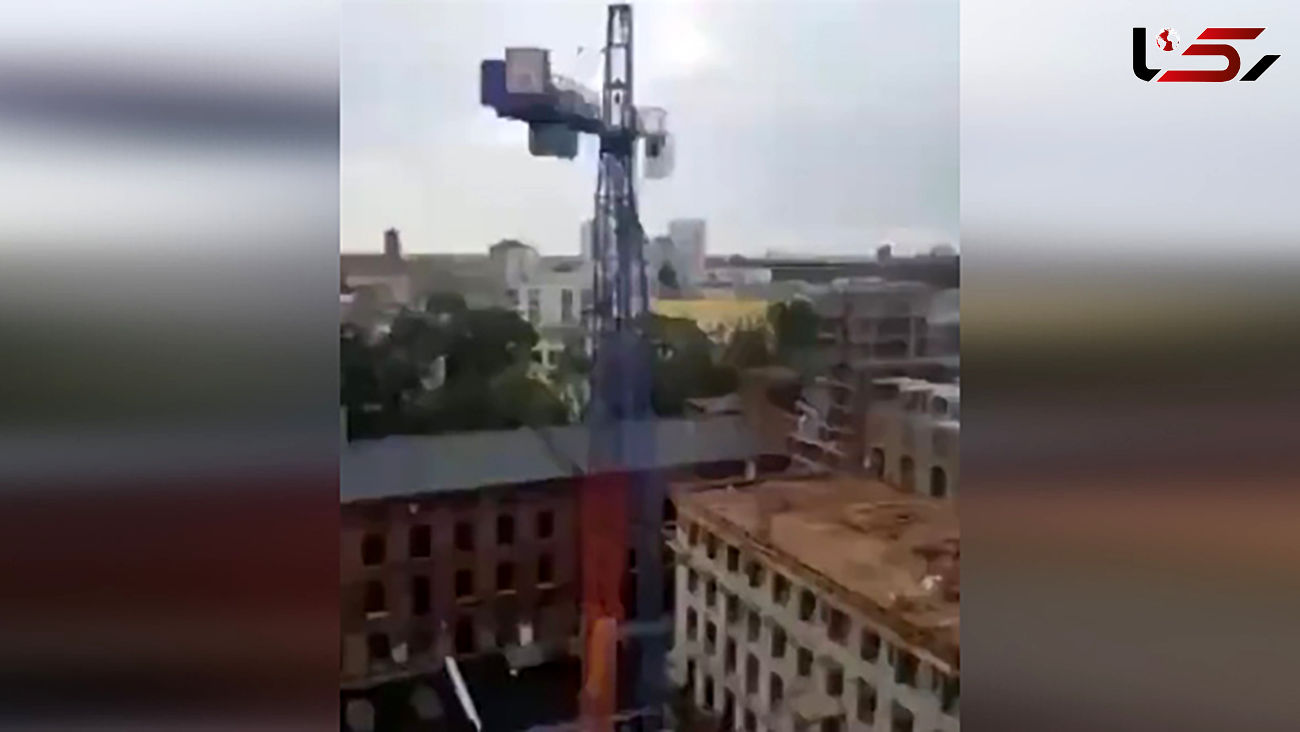 فیلم وحشتناک از لحظه سقوط جرثیقل روی یک برج