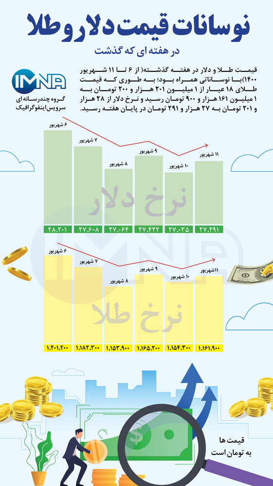 نوسانات قیمت دلار و طلا در هفته‌ای که گذشت+ اینفوگرافیک