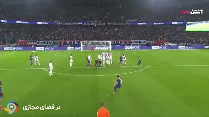 مسی روی ضربه آزادی که در دقیقه 36 برای پاری سن ژرمن گرفته شد با شوتی دیدنی سه کنج دروازه حریف را نشانه گرفت و در حالی که دروازه بان لیون فقط نظاره گر این شوت کات دار بود و همه خود را آماده بوسه توپ به تور کرده بودند، توپ به محل تلاقی دو تیر افقی و عمودی برخورد کرده و از دروازه دور شد.