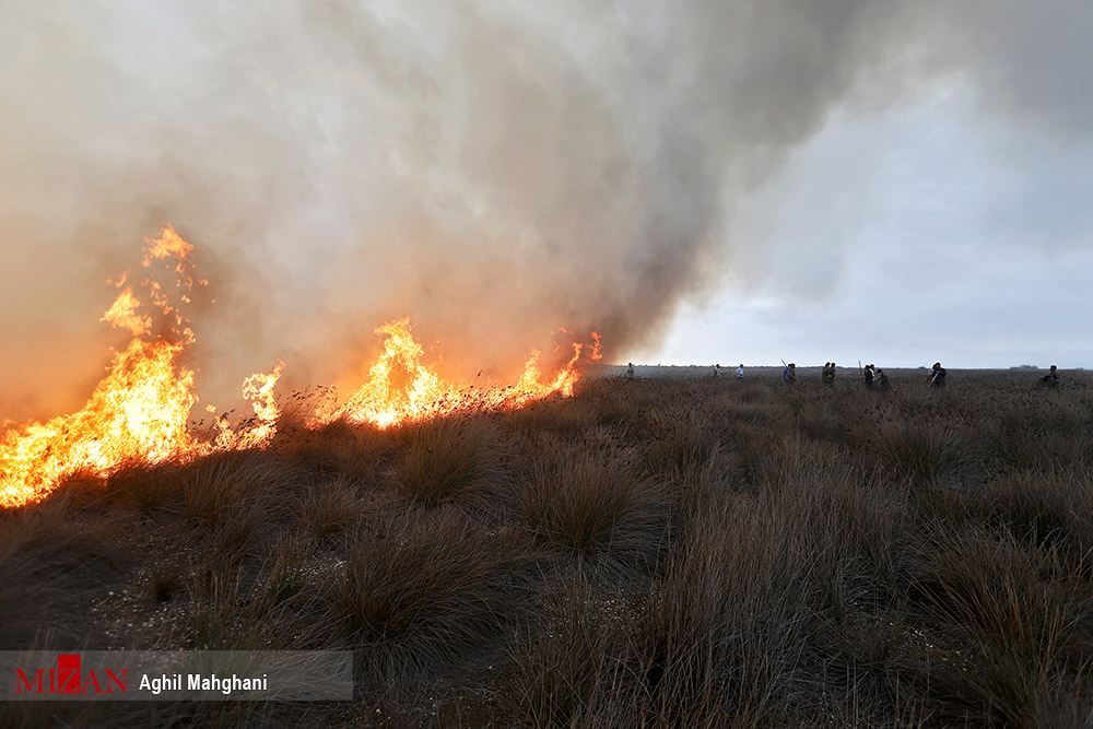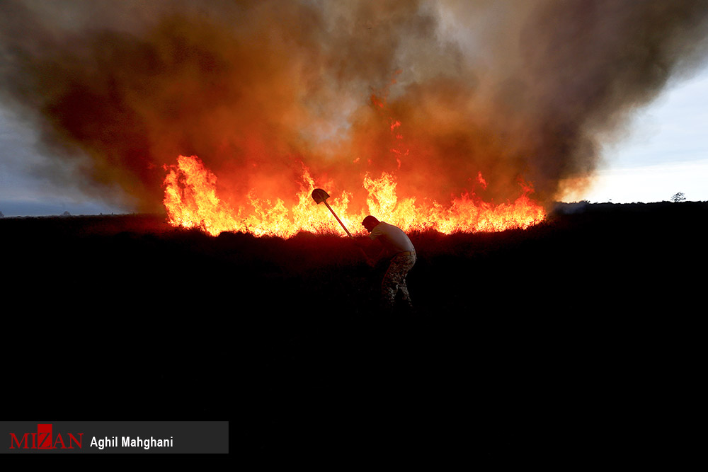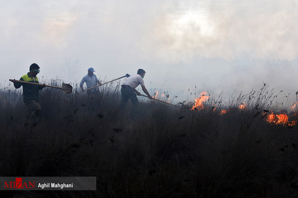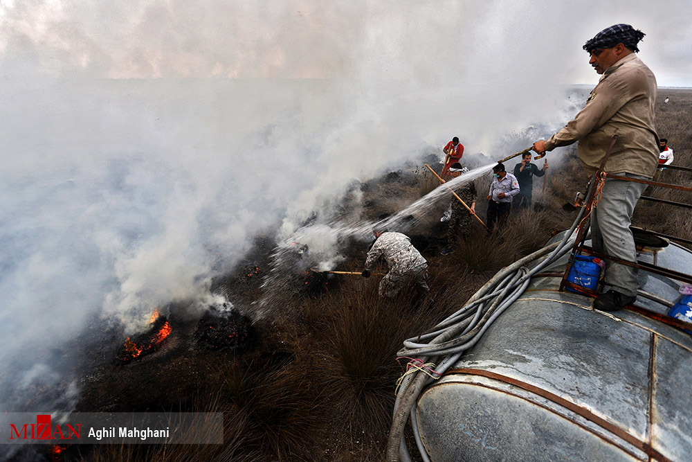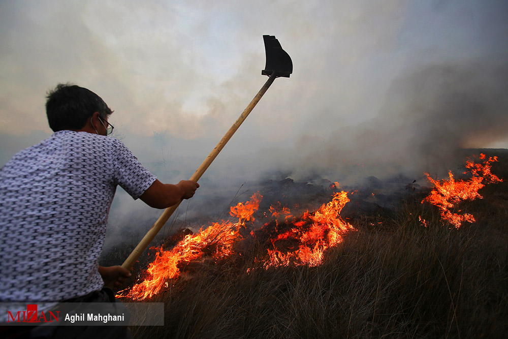 تلاش برای خاموش کردن آتش در جزیره «آشوراده» + عکس