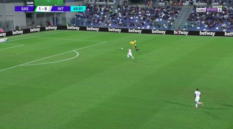 اما به نظر می رسد تیم اینزاگی در این دیدار از داوری سود برده است. تصاویر موید آن است که سمیر هندانوویچ، کاپیتان اینتر در نیمه اول باید اخراج می شده، داور تصمیم دیگری گرفته است. اشتباه دنزل دومفرایس روی پاس رو به عقب و ضعیف استفان دی فرای باعث شد ساسولو در موقعیت گلزنی قرار بگیرد، اما خطای سمیر هندانوویچ در این صحنه نادیده گرفته شده و او از دریافت کارت قرمز احتمالی فرار کرد.