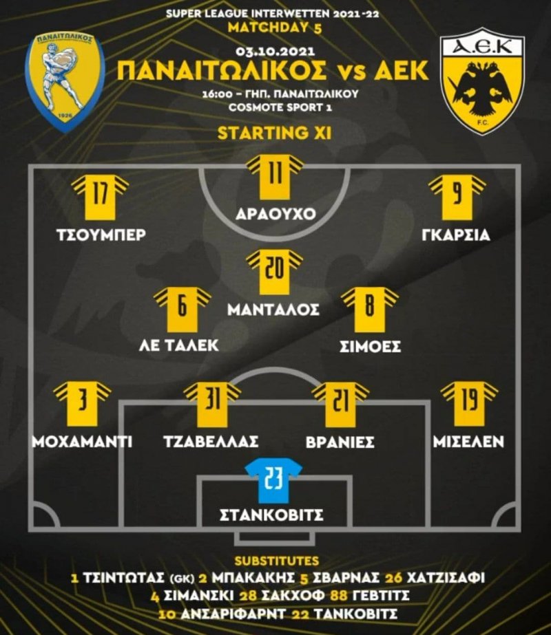 میلاد محمدی، دیگر ملیپوش ایرانی آ. ا. ک آتن که در دیدار هفته قبل بهعنوان یار جانشین به میدان رفت و یک گل مردود به ثمر رساند، امروز برای نخستین بار به ترکیب این تیم برابر پانتولیکوس رسیده است.