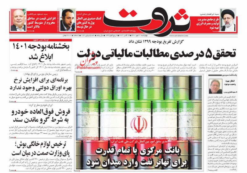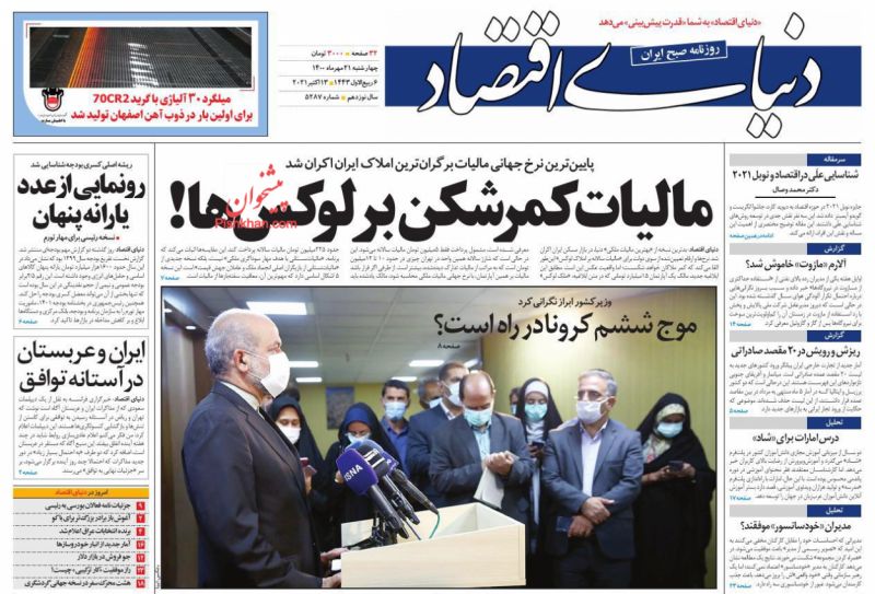 صفحه نخست و عناوین مهم برخی از روزنامه‌های صبح کشور چهارشنبه ۲۱ مهر ۱۴۰۰