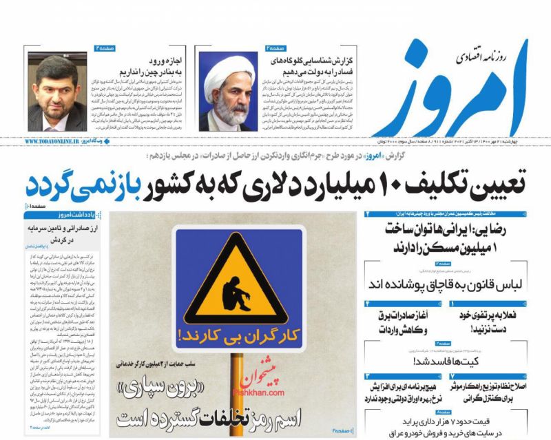 روزنامه‌های صبح کشور چهارشنبه ۲۱ مهر