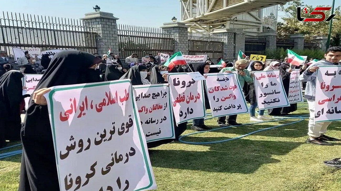 تعدادی از زنان ومردان مخالف واکسن کرونا که دست نوشته هایی با خود همراه داشتند، در مقابل ساختمان مجلس تجمع کرده و با حمل پلاکاردهایی علیه واکسیناسیون کرونا شعار دادند.