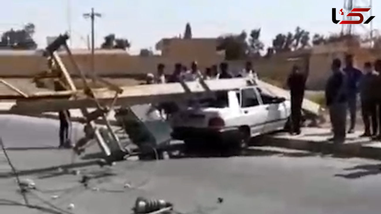 فیلم نصف شدن پراید در سقوط تیربرق !