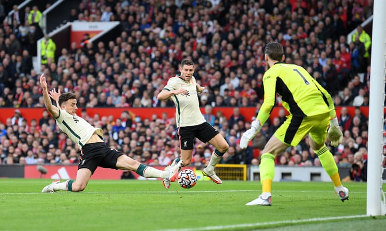 باز هم اشتباه عجیب مدافعان یونایتد و قاطی کردن هری مگوایر و لوک شاو باعث شد توپ در سمت راست به ترنت الکساندر آرنولد برسد. ارسال زمینی این بازیکن در مقابل دروازه خالی به دیگو ژوتا رسید و او به راحتی موفق شد دومین گل تیمش را وارد دروازه یونایتد کند تا شرایط برای شیاطین سرخ دشوارتر از قبل شود. لیورپول در 10 مسابقه آخر خود در لیگ برتر تنها یک بار مغلوب منچستریونایتد شده و به نظر می رسد این روند باز هم ادامه خواهد داشت.