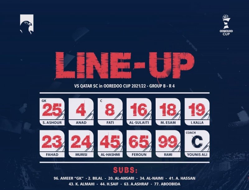 هافبک ایرانی العربی نخستین بازی خود پس از پیوستن به این باشگاه را در هفته سوم جام اوریدو قطر مقابل الغرافه انجام داد، اما او امشب در این رقابتها به میدان نمیرود و در لیست بازی با قطر اس. سی دیده نمیشود.