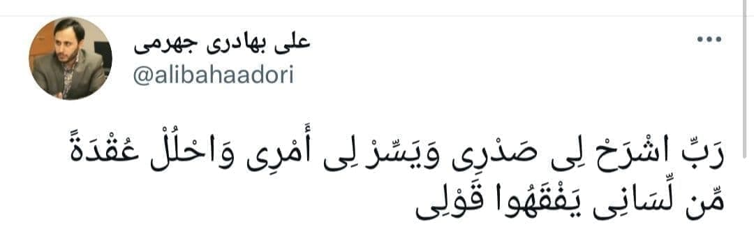 نخستین توئیت بهادری جهرمی پس از انتخاب به عنوان سخنگوی دولت: