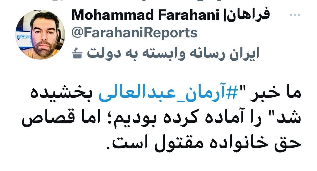 ما خبر آرمان عبدالعالی بخشیده شد را آماده کرده بودیم. اما قصاص حق خانواده مقتول است.
