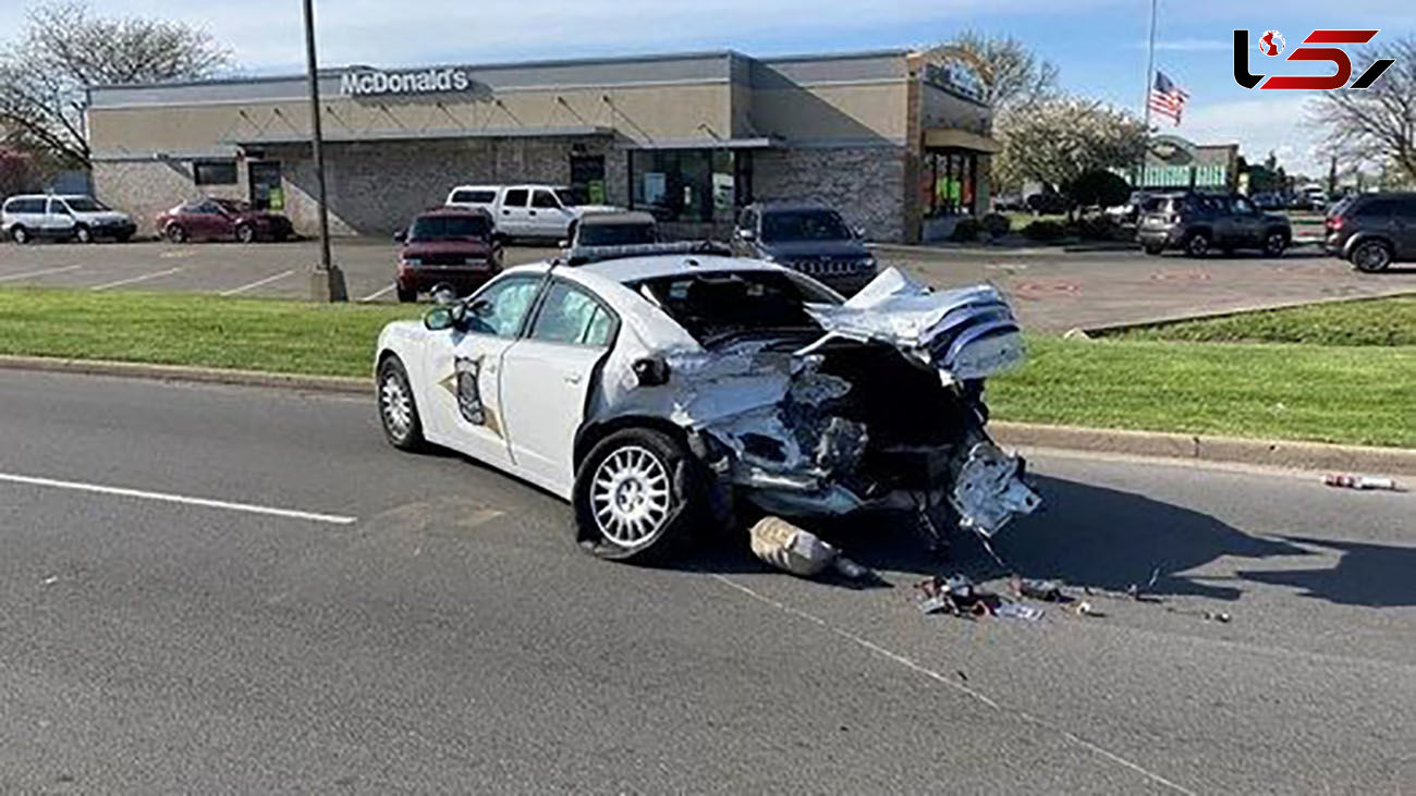 فیلم هولناک از تصادف کامیون با ماشین پلیس / 2 پلیس شوکه شدند
