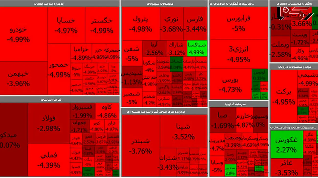 فملی، فولاد، فارس، شستا و شبندر بیشترین اثر منفی را بر روند حرکت شاخص گذاشتهاند. شاخص ساز ها امروز سراسر قرمزپوش شدند.