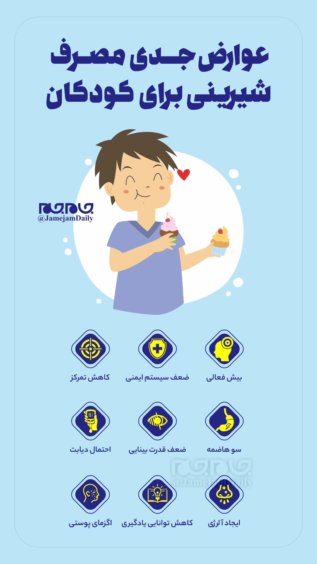 اینفوگرافیک| عوارض جدی مصرف شیرینی برای کودکان