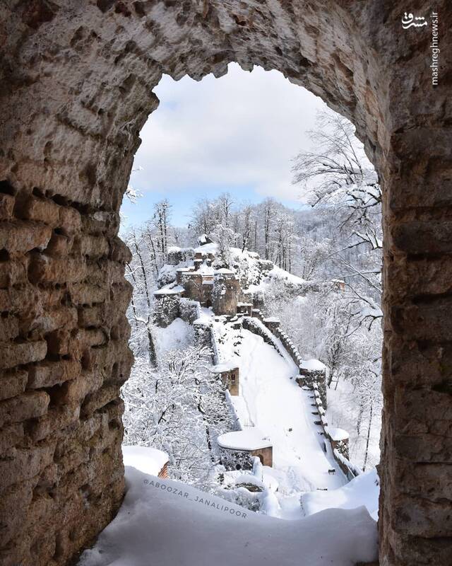 تصویری زیبا از یک روز برفی در قلعه رودخان + عکس